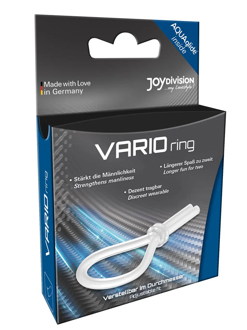 Climaxing together is finally possible with the VARIOring! Its firm fit enhances the erection and helps prevent premature ejaculation, while its adjustable size ensures a perfect fit. Enjoy longer-lasting lovemaking and intensified pleasure for both partners.
